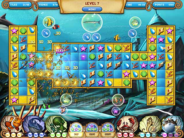 Plongez au plus profond de l'océan et sauvez les fonds marins dans ce jeu de Match 3 aquatique. Accompagnez un poisson clown alors qu'il tente de sauver les fonds marins à l'aide d'acolytes tous plus loufoques les uns que les autres. Terminez des grilles de Match 3 en assemblant coquillages et crustacés ! - Atlantic Quest 2: The New Adventures