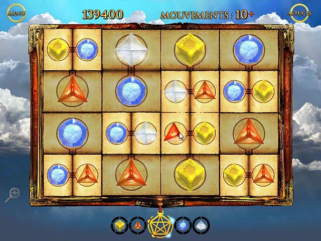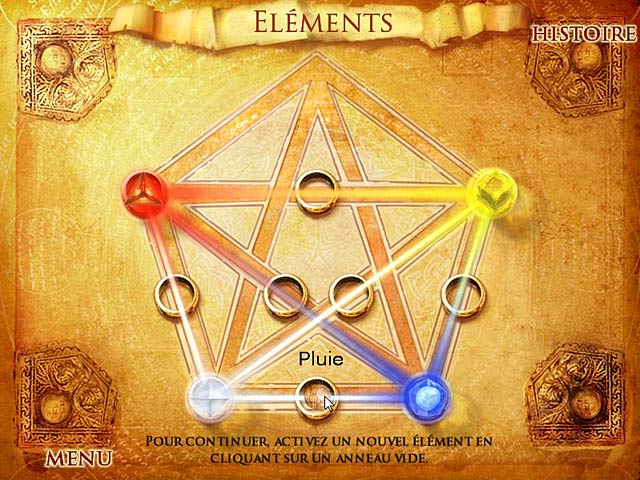 La découverte du "Traite de l'Alchimiste" par Leonard de Vinci fournit une formule incomplète pour créer l'Elixir de Vie. Trouvez les indices laissés par l'assistant de De Vinci dans une aventure scientifique dans laquelle vous devrez utiliser les 4 éléments : l'eau, la terre, le feu, l'air et un 5ème élément inconnu. Permutez des gemmes élémentaires pour faire des associations du même type qui vous permettront de découvrir l’Elixir de Vie. - Elements