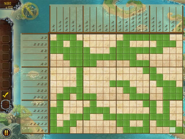 Découvrez le monde mystérieux des pirates tout en remplissant des grilles de pictogrammes de plus en plus élaborés. Embarquez sur le navire et créez des formes spécifiques grâce aux suites de chiffres sur le côté des grilles en évitant les erreurs. Terminez tous les niveaux et devenez un pirate aguerri. - Fill and Cross Pirate Riddles 3