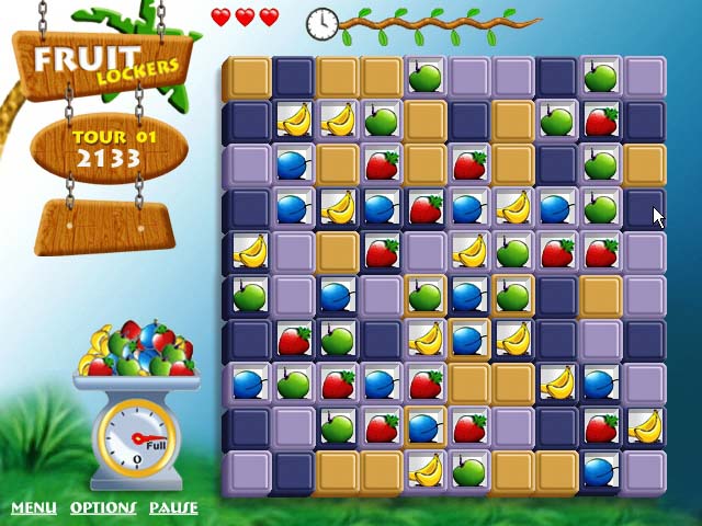 Fruit Lockers est un jeu de match 3 avec un truc en plus. Echangez des casiers pour découvrir les fruits qu’ils contiennent, puis mettez-les sur la balance. Plus vous avancez dans le jeu, plus vous trouverez de fruits, d’outils et d’ennemis. Ce jeu est facile à apprendre mais attention : vous ne pourrez plus vous passer de Fruit Lockers ! - Fruit Lockers