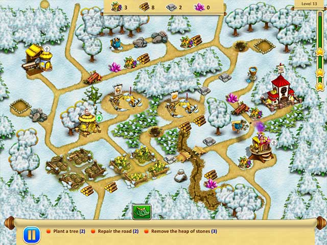 Dans Gnomes Garden, le roi est tombé malade et c'est à vous de le guérir. Construisez des bâtiments, retirez des obstacles, réparez des ponts endommagés et sauvez le jardin royal de la sécheresse dans ce jeu de gestion du temps ! Plus de 40 niveaux vous attendent. Faites vite, le royaume a besoin de vous ! - Gnomes Garden