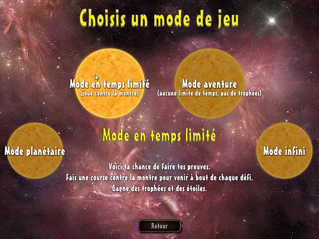 Jewel Venture est un jeu de Match 3 trépidant. Explorez l’univers coloré de Jewel Venture et choisissez parmi 4 modes de jeu. Visitez toutes les planètes grâce au mode planétaire et glanez un maximum de trophées en faisant bon usage des bombes, météorites et autres améliorations. A vous de jouer ! - Jewel Venture