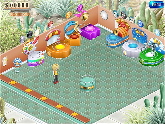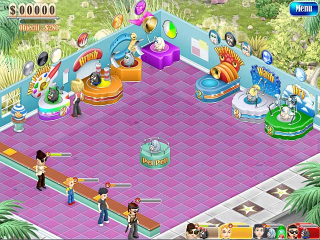 Aidez Polly à relancer une chaîne de magasins d’animaux dans quatre villes des Etats-Unis. Les clients peuvent y acheter un animal (chat, chien ou lapin) ou bien l’emmener pour un service de toilettage. Grâce aux bénéfices obtenus dans les magasins, vous pourrez les améliorer en achetant de nouvelles machines et ainsi attirer plus de clients. - Pet Store Panic