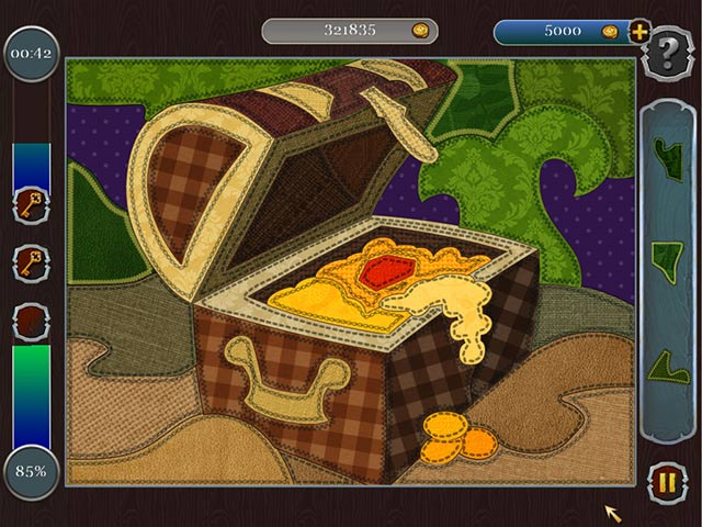 Assemblez des morceaux de tissus colorés et tentez de deviner quelle image de pirate se cache derrière chacune des 120 mosaïques disponibles. Et comme un vrai pirate, vous gagnerez des pièces d'or pour chaque niveau complété. Votre trésor vous sera aussi utile pour obtenir des indices, pour ajouter quelques secondes à la limite de temps imparti et pour débloquer tous les niveaux possibles. Disponible en mode détente ou normal, partez à la chasse au trésor ! - Mosaïque Pirate: Trésors des Caraïbes