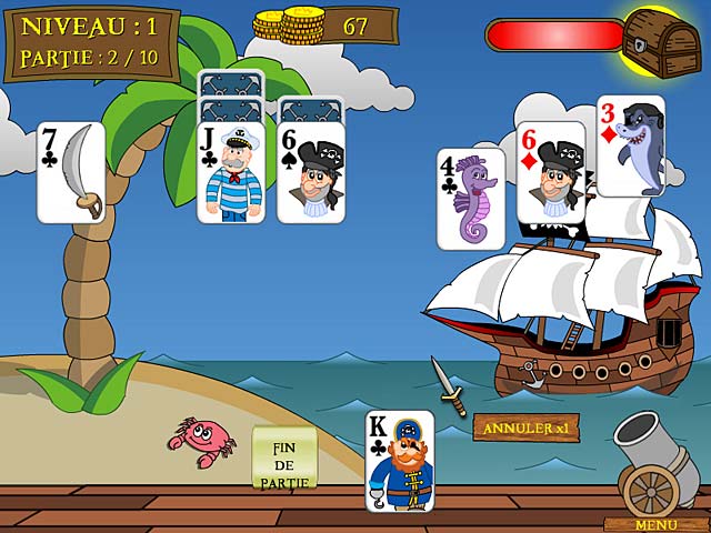 Embarquez dans une aventure de pirates, engagez des batailles de cartes, suivez des pistes au trésor et trouvez l'île où se trouve le coffre ! Récoltez des pierres précieuses alors que vous naviguez entre les îlots à la recherche d'un trésor légendaire. Aidez-vous des nombreux bonus, tel que le canon, pour en finir avec les parties endiablées ! - Pirate Solitaire