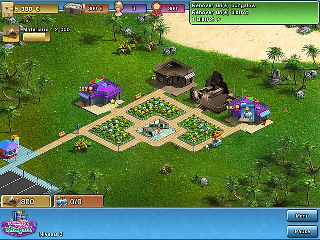 Créez un centre de vacances de renommée mondiale ! Commencez petit avec quelques bungalows et un restaurant, puis ajoutez cinémas, boîtes de nuit, piscines et autres installations pour divertir vos clients. Dès que l'argent commencera à rentrer, vous devrez prendre les bonnes décisions en tenant compte des employés et des ressources, améliorer vos équipements pour qu'ils rapportent davantage et faire un peu de marketing pour que votre centre atteigne des sommets ! - Summer Resort Mogul