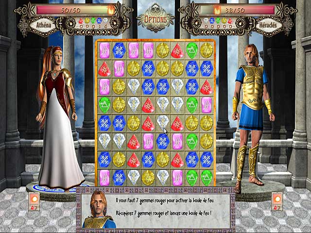 Zeus, se sentant faiblir avec l’âge, décide de laisser son trône à sa plus jeune fille Athéna, déesse de la sagesse, de la justice et de la guerre. Mais les autres dieux se sentent lésés et la provoquent en duel. Montrez à tous les dieux qu’Athéna est la plus digne de succéder à son père en remportant les combats de Match 3 contre les créatures mythologiques. A chaque victoire, obtenez une nouvelle technique d’attaque pour terrasser vos adversaires et accéder au trône de l’Olympe ! - Throne of Olympus