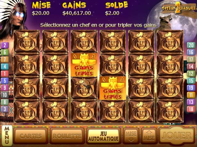 Les bonus du totem abondent et les animaux mystiques vous apportent le plus grand trésor qui soit : le Jackpot Wampum ! Gardez l'œil ouvert, la carte du grand chef peut vous aider à gagner beaucoup plus. Relaxez-vous et laissez-le remplir toutes les positions sur les rouleaux. Vous nagerez vraiment dans l'argent ! - Totem Treasure 2