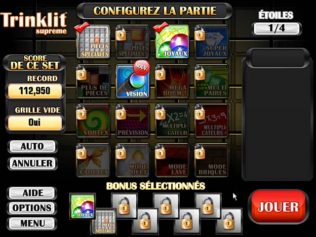 Résolvez d'incroyables casse-tête afin d'évoluer dans une multitude de niveaux, que vous pouvez créer sur mesure ! Gagnez des pierres précieuses et des points qui vous permettront d'acquérir des bonus. Chaque partie est ensuite personnalisable avec les bonus acquis ! Assemblez des formes géométriques et des images entre elles pour gagner ! - Trinklit Supreme