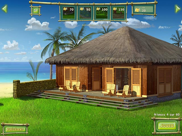 Dans Villa Banana, vous devrez assembler 3 fruits similaires ou plus pour les faire disparaître du tableau. Ce sera la seule manière de gagner de l'or ou de l'argent pour acquérir des améliorations pour votre villa. Achetez des flamands roses, des paons et des tas d'autres bêtes exotiques pour attirer les touristes ! - Villa Banana