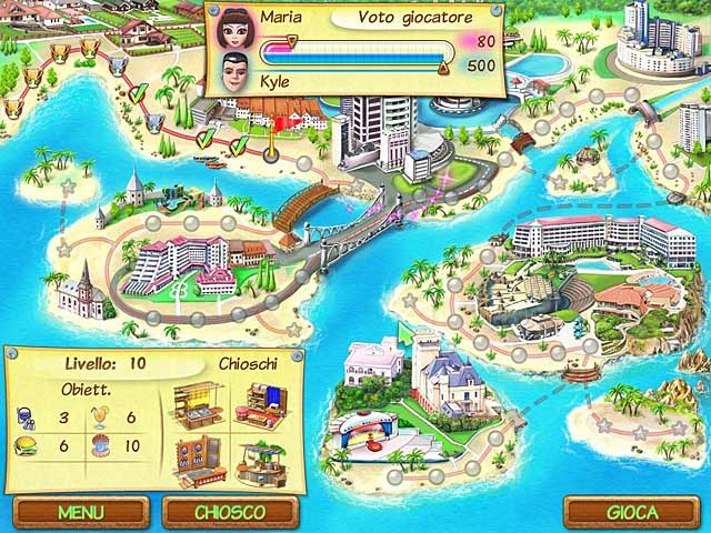 Incontra Maria, la dea della spiaggia e divertiti sotto il sole dell'estate. Guadagna soldi servendo cibo, bevande e souvenir nel tuo regno di sabbia e surf. Interagisci con dieci tipologie di abbronzatissimi clienti e dai il meglio di te per trionfare nei sette mini giochi presenti in questo assolatissimo gioco a gestione del tempo. Te la senti di affrontare oltre 50 livelli di puro divertimento da spiaggia? - Beach Party Craze