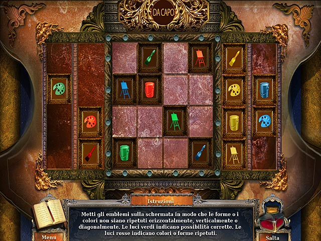 Svela il mistero che avvolge il letale talento di un artista in Dark Canvas: Dipinto di morte, una coinvolgente avventura a enigmi e oggetti nascosti! Tua figlia Angie era in viaggio in Europa quando è scomparsa senza lasciar traccia. La sua ultima lettera ti implora di raggiungerla su una remota isola italiana, dove ha scoperto un tragico segreto. Al tuo arrivo vieni a conoscenza di numerose morti sospette in città, accompagnate da avvistamenti di uno spirito leggendario da tutti chiamato l'Ombra. Non sapendo a chi toccherà la prossima volta, gli abitanti spaventati si sono rivolti a un artista locale, famoso per la sua abilità di predire il futuro nei suoi dipinti. Dovrai cercare questo pittore e i suoi misteriosi quadri prima di diventare la prossima vittima, insieme a tua figlia, delle sue micidiali visioni! - Dark Canvas: Dipinto di morte
