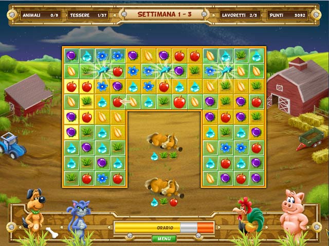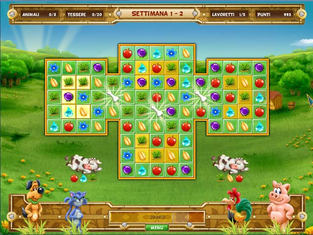 Metti alla prova la tua abilità con gli abbinamenti a 3 in Farm Quest! Abbina prodotti e occupati degli animali della fattoria in modo che siano sempre attivi e in buona salute. Guadagna soldi per acquistare miglioramenti e fai amicizia con i tuoi aiutanti, come Ettore il cane, usando le loro doti speciali per combattere parassiti e proteggere gli animali in questa divertente avventura campagnola. - Farm Quest