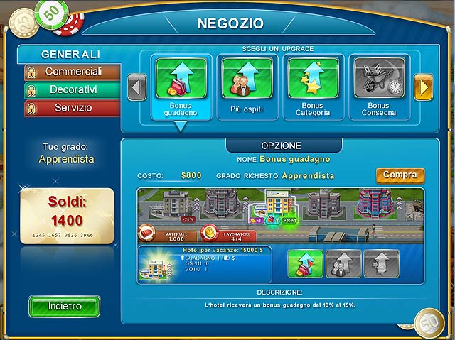 Vinci alla roulette del divertimento e aiuta Lynette a costruire un impero alberghiero nel cuore di Las Vegas in Hotel Mogul: Las Vegas, un frenetico gioco a gestione del tempo. Aggiungi ristoranti, casinò e aumenta la tua reputazione nel settore! Compra a basso costo e rivendi al massimo in una competizione mozzafiato per conquistare terre, denaro e prestigio. Scavalca la concorrenza e aggiungi nuove proprietà, assumi lavoratori e acquista materiali, migliorando il tuo impero fino a farlo diventare una gemma scintillante nel deserto del Nevada! - Hotel Mogul: Las Vegas