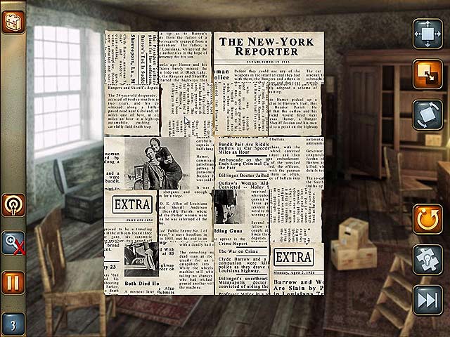 Segui il famosissmo duo nei loro crimini lungo tutta l'America in Public Enemies: Bonnie and Clyde, un affascinante gioco a oggetti nascosti. Janette Jones Parker è una scrittrice che ha preso una stanza al Red Crown Tavern a Platte City, Missouri, per scrivere il suo nuovo libro. Dopo il ritrovamento fortuito di un diario, scopre che il luogo in cui alloggia è il luogo dove i due famosi fuorilegge si sono nascosti per molto tempo. Aiuta Janette a decifrare uno strano messaggio nel diario di Bonnie e segui la scia di crimine che i due famosi banditi hanno lasciato nella storia. - Public Enemies: Bonnie and Clyde