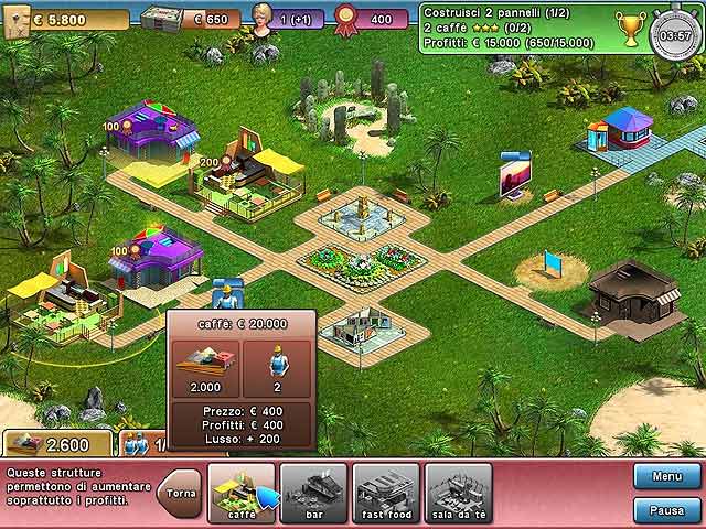 Crea un paradiso vacanziero estivo in Summer Resort Mogul! Comincia in piccolo con un paio di bungalow, un ristorante, aggiungici cinema, piscine e molti altri divertimenti. Usa il tuo talento nella gestione del tempo per fare scelte intelligenti su lavoratori e materiali, migliora le strutture che possiedi e rendile più redditizie facendo anche un po' di pubblicità. Costruisci il resort migliore al mondo! - Summer Resort Mogul