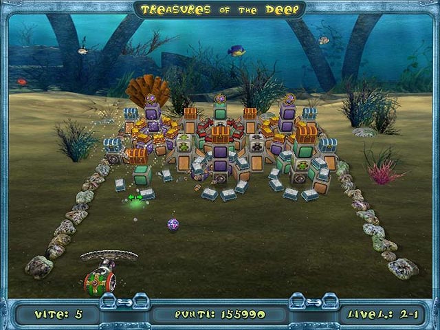 Esplora spettacolari mondi sottomarini pieni di tesori in questo meraviglioso arcade! Moltissimi livelli animati unici nella loro architettura, pieni di tesori e gioielli, ti aspettano con spettacolari animazioni 3D e moltissimi effetti speciali. Esplora bellissimi scenari subacquei abitati da pesci esotici e moltissima vegetazione marina. Con 3 livelli di difficoltà il divertimento è garantito sia per novellini che per giocatori esperti! Tuffati nei tesori degli abissi! - Treasures of the Deep