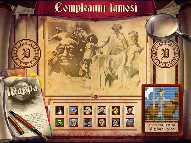 In World Mosaics 5, un affascinante gioco con enigmi, diventa un esperto in Cronologia! Dopo aver restaurato il Museo di storia universale di Atlantide, sei stato accettato come apprendista in Cronologia alla Grand Pelasgian University. Viaggia nel tempo e risolvi enigmi fotografici imparando le origini di molte festività antiche come il Martedì Grasso, il Capodanno cinese, l'Oktoberfest. Completa i tuoi corsi e diventa cronologo in World Mosaics 5! - World Mosaics 5
