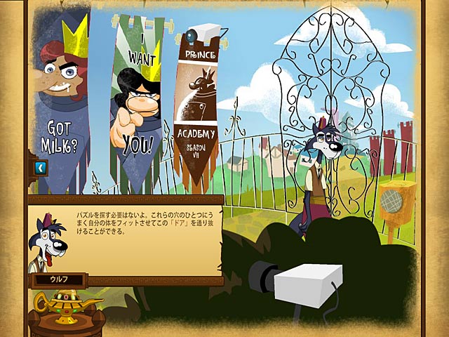 オオカミは羊をぺろりと食べちゃう動物…そんなイメージをくつがえすオオカミがここにいた!このゲームの主人公ウルフは肉よりも野菜、羊とお友達になっちゃう風変わりなオオカミ。そんなウルフがなりたいものは何とランプの精!やり手の家庭教師と一緒にランプの精になるためのトレーニングを応援しよう。頭をフルに回転して多数のパズルにチャンレンジ。ウルフと家庭教師の爆笑なやり取りにも注目! - ビッグ ブレイン ウルフ
