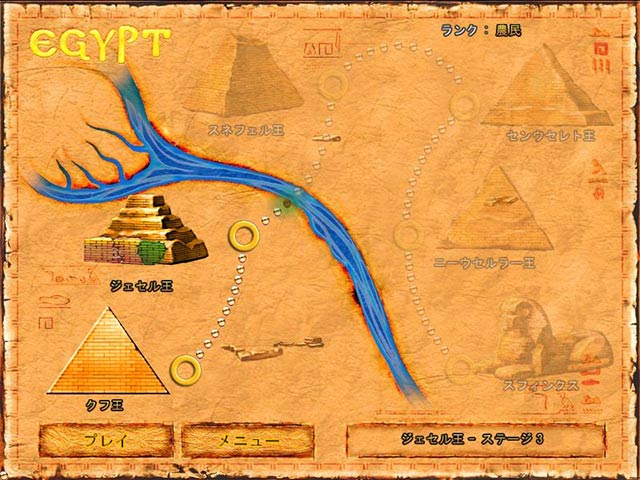 PC ダウンロードゲーム:マッチ 3 ゲーム 英語版タイトル:Brickshooter Egypt 今すぐ「Brickshooter:エジプト」をプレイ! まずは無料体験版をダウンロードしよう。 かつての栄光を失いつつあるピラミッドの奥で魔法の象形文字「グリフ」が発見された。ファラオが残した光る魔法のグリフをつなげていくとピラミッドの修復方法が明らかに!ピラミッドが崩れ落ちる前にグリフをつなぎ合わせて修復の手がかりをすべて探し出そう!無料体験版で「Brickshooter:エジプト」をプレイするか完全版をダウンロードして壮大なピラミッドを修復せよ! - Brickshooter:エジプト