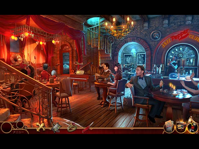 PC ダウンロードゲーム:アイテム探しゲーム 英語版タイトル:Cadenza: Music, Betrayal and Death 今すぐ「カデンツァ:音楽と裏切りと死」をプレイ! まずは無料体験版をダウンロードしよう。 聴け…裏切りのメロディを!久しぶりに故郷のニューオーリンズに戻って来たあなた。町はマルディグラの祭りでにぎわっている。その昔人気を博したジャズバンド「ザ・ディクシー・ペッパーズ」のサックス奏者だった父が経営するジャズクラブに足を運んだあなたを待ち受けていたのは催眠にかけられぴくりとも動かない父と観客だった!父のそばには父がバンドに入る前にサックス奏者をつとめていた男が死からよみがえり、元メンバーに復讐をしているという内容の手紙が…!高い才能を持っていたサックス奏者はなぜ突然死んでしまったのか?いったい過去にバンド内で何が起こったのか?魅惑的なニューオーリンズの町を探索しながら過去の秘密を紐解こう! - カデンツァ:音楽と裏切りと死
