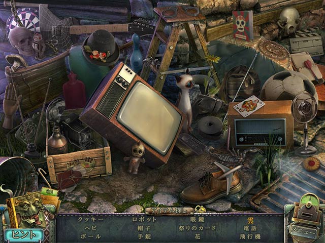 PC ダウンロードゲーム:アイテム探しゲーム 英語版タイトル:Calavera: Day of the Dead 今すぐ「カラベラ:死者の日」をプレイ! まずは無料体験版をダウンロードしよう。 プロポーズ大成功!でも結婚する前にお父さんの祝福を得ることがカタリナの唯一の条件。アランとカタリナはお父さんの住むメキシコの小さな町に列車で到着したが…長旅で疲れきったカタリナが何者かに連れ去られた!アランはカタリナの乗せられた列車を必死に追いかけたが途中で振り落とされてしまった。あたりを見回すとそこは不気味な景色が広がっていた…どうやらカタリナを連れ去った人物は生と死の境界の町に住んでいるようだ。カタリナを助けるには奇妙な本の助けを借りながらカタリナの閉じ込められている城に忍び込む方法を見つけなければならない。この町の不気味な住人たちと取引しながら手遅れになる前にカタリナを救出しよう! - カラベラ:死者の日