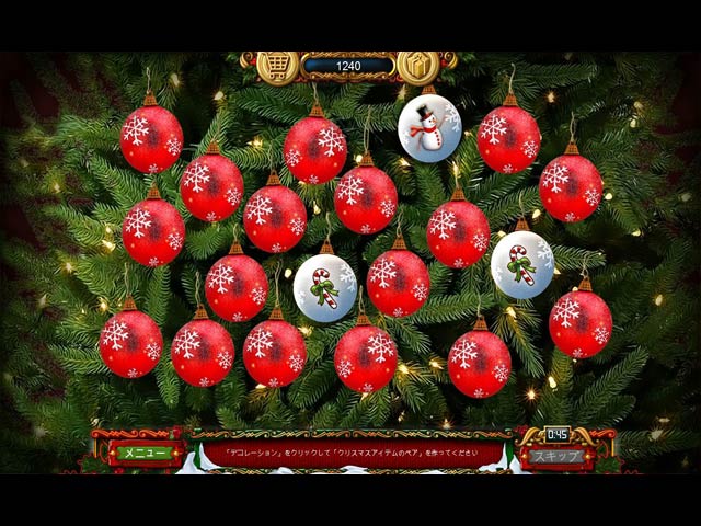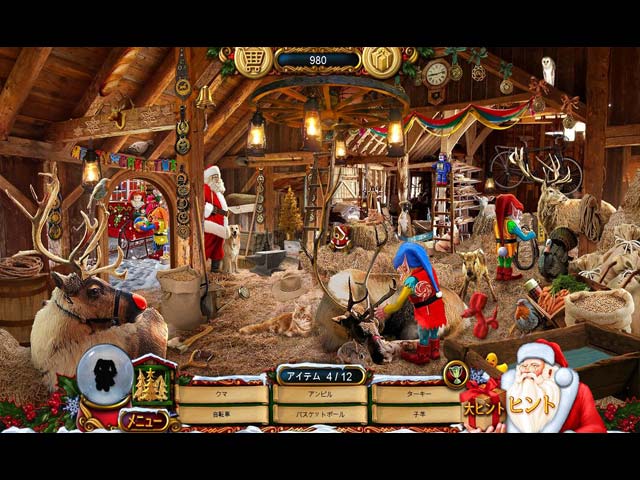 英語版タイトル:Christmas Wonderland 7 毎年この時期になるとサンタクロースとエルフたちはクリスマスの準備に大忙し。クリスマスまで残すところあと一週間!はやく子供たちのプレゼントを用意してクリスマス前までにソリに乗せなくては!その頃、クリスマスを楽しみにしているマイクとエマはパパと一緒に町へクリスマスツリーを買いにいくことに。早速スプリングフィールド農場へ行って大きなツリーを探そう。帰りにデパートや子供たちの大好きなキャンディワールドに寄ってクリスマス気分を味わいながらアイテム探しやミニゲームで遊ぼう。巧妙に隠されたゴールドクリスマスツリーや忘れ物プレゼントを見つけて集めたコインでクリスマスプレゼントを買うのも忘れずに。今年のプレゼントは何が入っているかな? - クリスマスワンダーランド 7