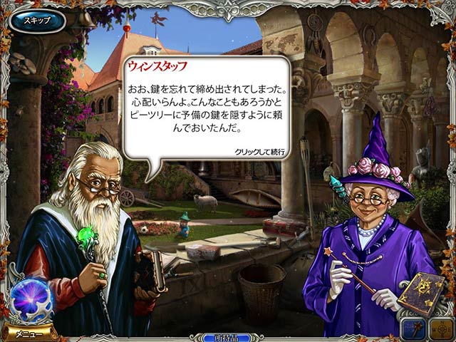PC ダウンロードゲーム:アイテム探しゲーム 英語版タイトル:Chronicles of Albian 2: The Wizbury School of Magic 今すぐ「クロニクル オブ アルビアン 2:ウィズベリー魔法学校」をプレイ! まずは無料体験版をダウンロードしよう。 フェアリーゴッドマザーのグウェンドリン叔母さんらと共にウィズベリー魔法学校にやってきた。ところが到着早々、学校の金庫から学校の改築費用の大切な金がすべて盗まれてしまうという事件が発生。改築資金を提供した魔法使い組合が視察に来るまでに改築を終えなければ、学校は閉鎖に追い込まれるかもしれないと言う。校長の頼みでとりあえず校内の売ってお金になりそうなアイテムを探して改築の費用を集めることになり、広い校内からできる限りたくさんのアイテムを集めなくてはならない!しかし、金を盗んだ犯人捜しも忘れるわけにはいかない。今すぐウィズベリー魔法学校の危機を救え! - クロニクル オブ アルビアン 2:ウィズベリー魔法学校