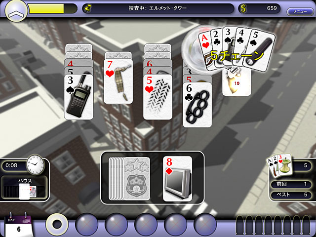 PC ダウンロードゲーム:頭の体操ゲーム 英語版タイトル:Crime Solitaire 今すぐ「クライムソリティア」をプレイ! まずは無料体験版をダウンロードしよう。 事実上、犯罪ゼロのために検挙率がサイアクなトップリー警察署。このままではいけないとトップリー市長と警察署長がタッグを組み長年忘れさられていた古い(そしてちょっとマヌケな)法律を行使して検挙率を上げることを誓った!新米の警察捜査官としてのキミの使命は現場に足を運び、犯罪コンピューターで複数いる容疑者の中から真犯人を絞り込むこと。カードをめくりながら重要な情報を集めていこう!実際に存在するおもしろ法律が盛り込まれた「クライムソリティア」で真犯人をどんどん見つけよう!無料体験版でカードゲーム「クライムソリティア」をプレイするか完全版をダウンロードしてトップリー警察署の検挙率アップを狙え! - クライムソリティア