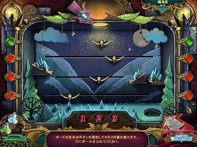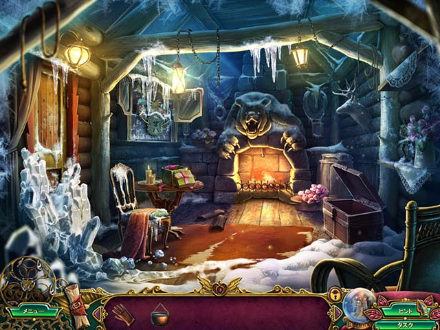 PC ダウンロードゲーム:アイテム探しゲーム 英語版タイトル:Dark Strokes: The Legend of the Snow Kingdom 今すぐ「ダーク・ストローク:雪の王国物語」をプレイ! まずは無料体験版をダウンロードしよう。 静かな森に一人の狩人がひっそりと暮らしていた。ある日、狩人の家の前を猛スピードで馬車が通り過ぎた。不気味な騎士に追われているのだ!騎士を追い払って中をのぞくと馬車に乗っていたのはなんと空の王国の王女だった。王女は王国に戻ることを拒んで狩人と二人で森での暮らしを始めた。平穏な日々が続いていたが、ある日、奇妙な気球から贈り物が落ちてきた。その包みを開くと突然、家の中に雪嵐が吹き荒れた。そして王女は箱に入っていた水晶玉に吸い込まれてしまった!王女はなぜ追われていたのか?なぜ森に隠れたのか?謎の真相を突き止め、王女を水晶玉から救わなければ!息つく暇もなく繰り広げられる魅惑のストーリーを堪能しよう! - ダーク・ストローク:雪の王国物語