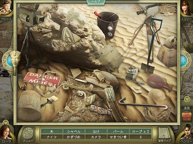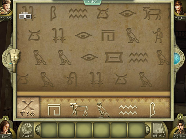 新しくオープン予定のエジプト博物館へと特別招待された家族 4 人。しかし一度足を踏み入れるとファラオの呪いによってピラミッドの中に閉じ込められてしまった!離ればなれとなった家族を無事再会させファラオの墓から脱出するためにもそれぞれのキャラクターとなりきって冒険をすすめよう。3D メガネを装着すれば臨場感あふれる場面を体験できるユニークな 3D モードでよりリアルな大冒険へと出発しよう! - エスケープ・ザ・ロスト・キングダム:失われた砂漠の王国