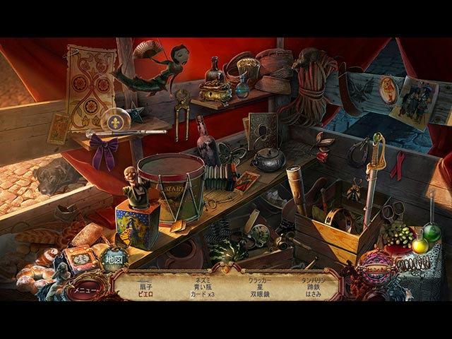 PC ダウンロードゲーム:アイテム探しゲーム 英語版タイトル:European Mystery: Scent of Desire 今すぐ「ヨーロピアン・ミステリー:欲望の香り」をプレイ! まずは無料体験版をダウンロードしよう。 フランスの平和な田舎町で退職を祝うシャンペンを楽しんでいると緊急の手紙が届いた。パリで一見何の関連性も見られない若い女性が行方不明になるという事件が頻発しているというのだ。折りしもパリではコレラが流行しており警察は手一杯で容疑者の手がかりを発見できずにいた。そして探偵としてこのような不可解な事件を放っておくことができないあなたはリタイアを返上してパリへ向かう。捜査の依頼主は娘が行方不明になっているという王室執事で、彼の職業上捜査は内密に行わなければならない。今すぐ様々な香りと偽りに満ちた犯人の痕跡をたどれ! - ヨーロピアン・ミステリー:欲望の香り