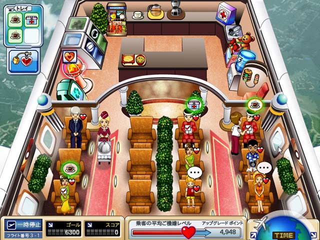 不況が続くこの時期、客室乗務員としてクレアが勤めてきたスターリンク航空もとうとう倒産が決まってしまった。しかし「捨てる神あれば拾う神あり」、空港会社の新しいオーナーがクレアの才能を認めて再び雇ってくれることに。ゼロから始めることとなった新しい会社が再び成功できるかは、クレアの頑張り次第!搭乗したお客さまのお世話をうまくこなして、もう一度スターアテンダントの座につけるかな?飛行機の中のワクワク感まで楽しめちゃうタイムマネージメントゲームで、気軽に空の旅をエンジョイしよう! - ファーストクラス・フルーリー