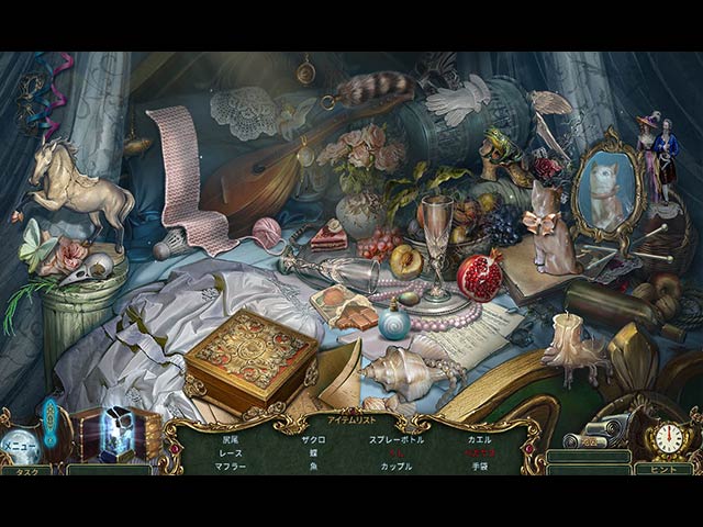 英語版タイトル:Haunted Legends: Faulty Creatures ERS Game Studios がお届けするホーンテッド・レジェンドシリーズ! オルドグレイ伯爵の館で殺人事件が発生し、その捜査の依頼を受けてどしゃぶりの中オルドグレイ邸に向かったあなた。被害者は伯爵の長男アルフレッドの婚約者であり、有力な銀行家の一人娘。妙なのは遺体から心臓がくりぬかれていたこと。そして事件のあった夜に屋敷を出入りした者はいないことが判明している…酒好きの伯爵、威圧的な夫人、取り乱す長男、発明家の次男に聞き取り調査を行いながら複雑に交錯する人間関係を紐解いていこう。果たしてあなたはこの奇怪な事件の真相を暴くことができるのか?! - ホーンテッド・レジェンド:過ちの産物