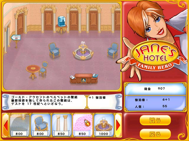 その昔、ジェーンの家族が経営していたという有名なホテルチェーンが、現在売りに出されているという事実を知ったジェーン。銀行から借りた買取資金を返済するためにも今度は国境を越えてエキゾチックなホテルを経営しよう!客室係とボーイの作業も増えて、アップグレードもさらに豪華なラインナップで登場。果たしてファミリービジネスを復活させることはできるかな? - ジェーンズホテル: ファミリーヒーロー