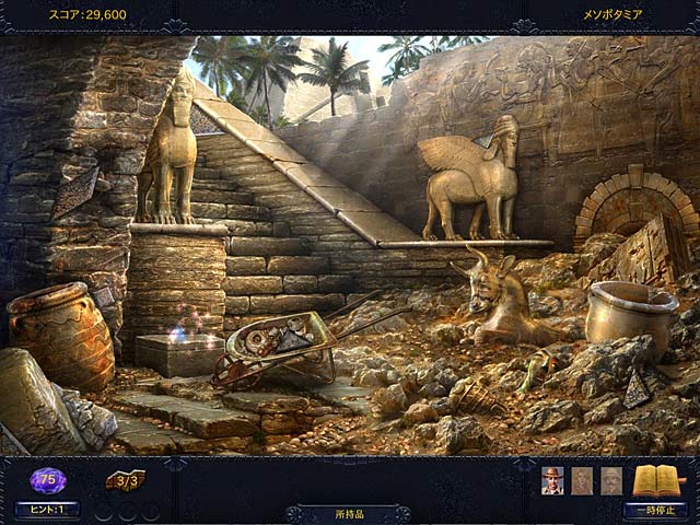 PC ダウンロードゲーム:アイテム探しゲーム 英語版タイトル:Jewel Quest Mysteries: The Oracle of Ur 今すぐ「ジュエル クエスト・ミステリーズ:ウルの神託」をプレイ! まずは無料体験版をダウンロードしよう。 冒険家、ルパートは古代メソポタミア文明から伝わるというジュエルボード、「ウルの神託」の手がかりがイラクで発見されたという情報を入手!過去に一緒に冒険に出かけたエマとセバスチャンと共にメソポタミア文明の遺跡へ向かい「ウルの神託」を探せ!バグダードの闇市場やオスマン帝国の城、そして驚きの秘境へ…かすかな手がかりを頼りに壮大な冒険が繰り広げられる。無料体験版で「ジュエル クエスト・ミステリーズ:ウルの神託」をプレイするか完全版をダウンロードしてエキサイティングなマッチ 3 とアイテム探しゲームのコンビネーションを堪能しよう! - ジュエル クエスト・ミステリーズ:ウルの神託