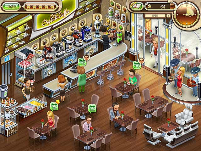 PC ダウンロードゲーム:タイムマネージメントゲーム 英語版タイトル:Jo's Dream: Organic Coffee 今すぐ「ジョーのドリームカフェ:オーガニックコーヒー」をプレイ! まずは無料体験版をダウンロードしよう。 ジョーは前途有望な女の子。大学卒業後、世界中を周る旅から戻った空港でばったり再会したマークと 2 人で夢だったカフェの経営に乗り出すことに!いろいろな種類の飲み物の作り方を覚えたり、次から次へとやってくるお客さんに対応したり、またスタッフを管理したりと仕事は山積み!迅速で的確なサービスが求められます。収益が貯まったら少しずつ店内の設備や装飾をアップグレードし、さらにスタッフを雇ってどんどん大きく、そしてますますステキなカフェにしていけます!無料体験版でタイムマネージメントゲーム「ジョーのドリームカフェ:オーガニックコーヒー」をプレイするか、完全版をダウンロードしてジョーと一緒にカフェ経営の夢を実現しよう! - ジョーのドリームカフェ:オーガニックコーヒー