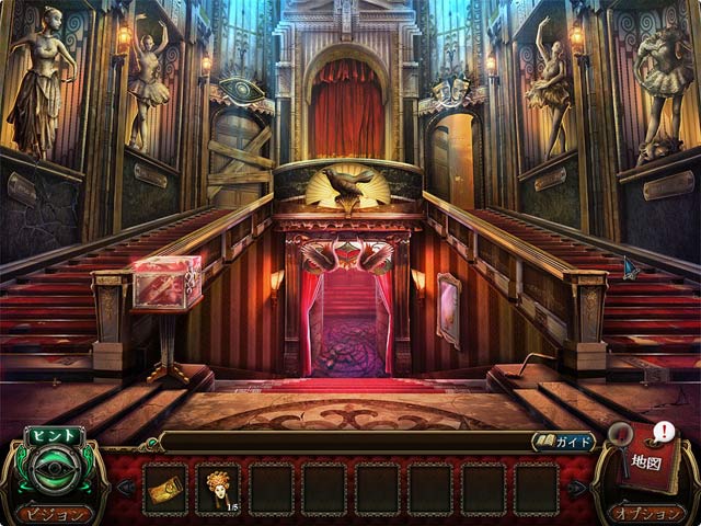 PC ダウンロードゲーム:アイテム探しゲーム 英語版タイトル:Macabre Mysteries: Curse of the Nightingale 今すぐ「マカーブル・ミステリー:ナイチンゲールの呪い」をプレイ! まずは無料体験版をダウンロードしよう。 キミの手元に届いたのは40年前から行方不明になっているおじいちゃんからの手紙。中には焼け落ちて荒廃したナイチンゲール劇場への招待状が!おじいちゃんが監督をしていたその劇場に行ってみると、もうすぐ解体されるはずの劇場には当時の栄華のおもかげがまだ残っている。だが中に入ってみると不気味な人影、そしてキミをおとしいれようとするワナでいっぱいだ!華やかなパフォーマンスの裏に渦巻いていた当時の愛憎劇がまだ生き続けているのか?!無料体験版で「マカーブル・ミステリー:ナイチンゲールの呪い」をプレイするか完全版をダウンロードして、華やかな劇場舞台裏のミステリーを堪能しよう! - マカーブル・ミステリー:ナイチンゲールの呪い