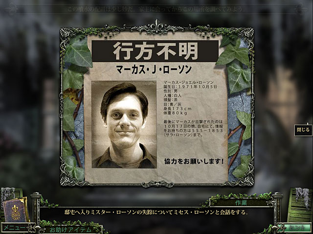アメリカ南部、ルイジアナ州のとある小さな町には、海賊の呪いを恐れて地元住民たちが近づかない古い邸宅が建つ。そんな場所に引っ越してきたローソン一家の大黒柱が突然姿を消してしまった!娘は父親が海賊の亡霊によって誘拐される瞬間を目撃したと証言。家族に残された最後の望みは名誉捜査官であるキミのみ!果たして海賊の呪いの真相を暴き姿を消した夫を無事に見つけることができるだろうか!? 当ゲームは特別先行リリースのコレクターズ・エディションです。コレクターズ・エディションをお買い上げの場合、特別ボーナスとしてマンスリー・スタンプカードにスタンプを 3 つ加算させていただきます。 コレクターズ・エディション特典: - ミステリー事件簿:十三番目の骸骨 コレクターズ・エディション