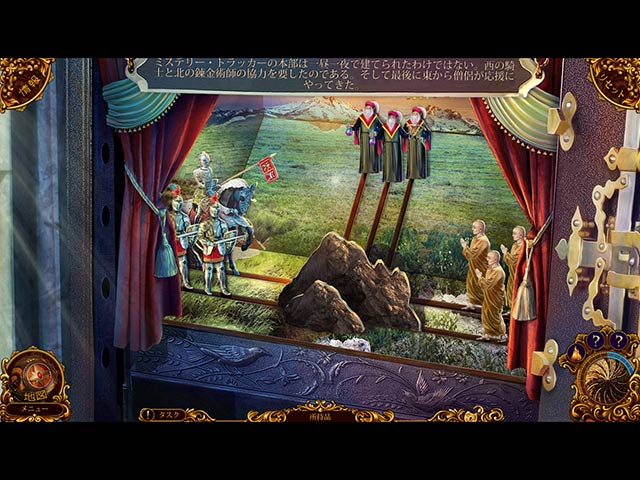 PC ダウンロードゲーム:アイテム探しゲーム 英語版タイトル:Mystery Trackers: Silent Hollow 今すぐ「ミステリー・トラッカー:サイレント・ホロウ」をプレイ! まずは無料体験版をダウンロードしよう。 ミステリー・トラッカー騎士団総本部で緊急事態発生!その昔、騎士団を裏切りその罰として冷凍カプセルの中で数世紀眠り続けてきたモルフェウスが目覚めたとの報告があったのだ!強力な催眠の力を持つモルフェウスは次々とミステリー・トラッカーの捜査官たちを操り、復讐を企んでいる。キミは最後の頼みの綱として司令官からじきじきに本部に出向くように要請された。キュートで頼れる相棒ドッグ「エルフ」の協力を得ながらモルフェウスを探すために捜査を進めよう。果たしてキミは裏切り者の復讐から騎士団を守ることはできるのか?!今すぐ「ミステリー・トラッカー:サイレント・ホロウ」をプレイして総本部を危機から救い出そう! - ミステリー・トラッカー:サイレント・ホロウ
