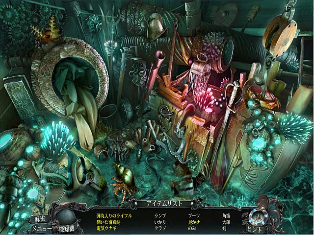 PC ダウンロードゲーム:アイテム探しゲーム 英語版タイトル:Nightmares from the Deep: The Cursed Heart 今すぐ「ナイトメア・フロム・ザ・ディープ:呪われたハート」をプレイ! まずは無料体験版をダウンロードしよう。 その昔、カリブ海を恐怖のどん底に突き落とした伝説の海賊、ヘンリー・レミングトン。その亡骸は今まで見つからず伝説の男の謎は深まるばかりであった…しかしこの度主人公が館長を務める博物館にて海賊を特集した展示会が開催されることになる。注目すべき展示品は海底から発見されたばかりのレミングトンの遺体!翌日の開館に向けて娘と一緒に夜中まで働く主人公であったが海賊の魔の手がすぐそこまで迫ってきていた!無料体験版で「ナイトメア・フロム・ザ・ディープ:呪われたハート」をプレイするか完全版をダウンロードして海底からよみがえった伝説の男の謎を解き明かそう! - ナイトメア・フロム・ザ・ディープ:呪われたハート