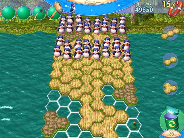 欲深い人間につかまったペンギンたちが、故郷の南極大陸を目指して脱出計画を立てた!ヨチヨチ歩きが可愛いペンギンたちが、川を無事に渡れるように板をしきつめて橋をつくってあげよう。すき間ができてしまうと、ペンギンが水の中へと落っこちてしまうよ!板の型をうまく組み合わせながら、"賢く可愛く"ペンギンをレスキューしよう! - ペンギンの大冒険
