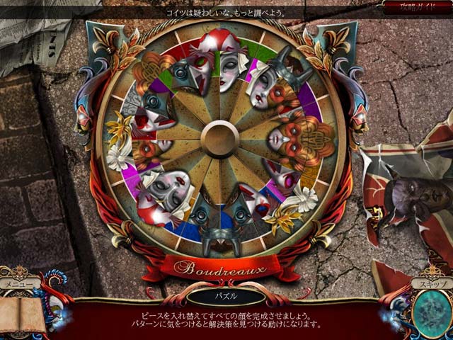 PC ダウンロードゲーム:アイテム探しゲーム 英語版タイトル:Shattered Minds: Masquerade Collector's Edition 今すぐ「シャッタード・マインド:復讐のマスカレード コレクターズ・エディション」をプレイ! まずは無料体験版をダウンロードしよう。 マルディ・グラのお祭りで賑わうニューオーリンズの街を得体のしれない霧が襲い、何と人々を顔無しにしてしまったの!キミはこの怖ろしい現象の原因を突き止めるため、捜査を開始。やがて有名なマジシャンのヴィサージが事件の背後にいることが判明する。そしてヴィサージがニューオーリンズ全体を破壊しようとする一方、数年前、邸宅が火災で焼け落ちた際に全員亡くなっていたはずのブードロー一家が街の人々に復讐を果たすために戻ってきたのだ。ヴィサージの暗い秘密を探り、ブードロー一家の破壊行為を止めよう!無料体験版でアイテム探しゲーム「シャッタード・マインド:復讐のマスカレード コレクターズ・エディション」をプレイするか、完全版をダウンロードして今すぐ邪悪なヴィサージの手からニューオーリンズを救え! 当ゲームは特別先行リリースのコレクターズ・エディションです。コレクターズ・エディションをお買い上げの場合、特別ボーナスとしてマンスリー・スタンプカードにスタンプを 3 つ加算させていただきます。また、Game Club クレジット 2 つでコレクターズ・エディションをお買い上げいただけます。 追加コンテンツなど標準版にはない特典が満載! コレクターズ・エディション特典: - シャッタード・マインド:復讐のマスカレード コレクターズ・エディション