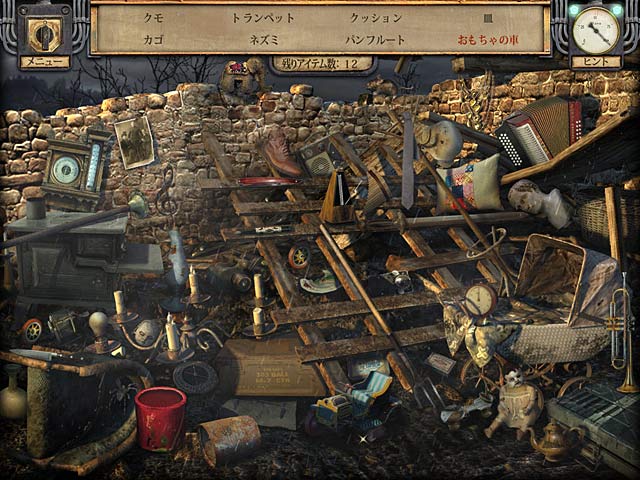 PC ダウンロードゲーム:アイテム探しゲーム 英語版タイトル:Silent Night: The Pianist 今すぐ「サイレント ナイト:ザ・ピアニスト」をプレイ! まずは無料体験版をダウンロードしよう。 歴史的に音楽の才能を持つ一家に生まれたあなたと妹のイヴェット。故郷の村で開催される二人の特別共演コンサートを間近に控えたある雨の夜に事件は起こった!イヴェットの卓越した才能を狙う正体不明の人物によって妹がさらわれてしまったのだ!育ての親であるアルバートおじさんの力を借りてイヴェットの居場所を突き止めよ!調査を進むにつれ明るみになっていく邪悪な陰謀を企む秘密組織と死んだ両親の秘密…立ちはだかる数々のアイテム探しパズルとミニゲームを切り抜けて真相を暴こう。今すぐ「サイレント ナイト:ザ・ピアニスト」の無料体験版か完全版をダウンロードして妹捜しの冒険に出発だ! - サイレント ナイト:ザ・ピアニスト