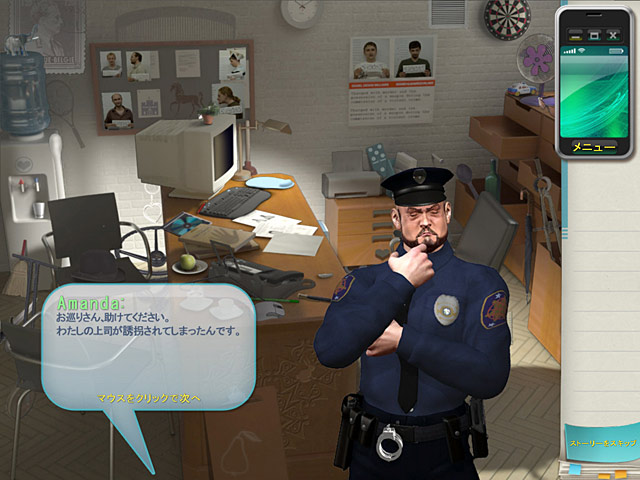 アマンダの上司は頭の切れるバリバリのビジネスマン。ところが大きな契約を終結したとたん姿を消してしまった!留守電には誘拐されて助けを求める上司からのメッセージが残されていた…アマンダとなって町のあちこちをくまなく調査し手がかりと目撃者からの情報を集めよう。ドキドキのストーリーを追いながら果たしてキミは誘拐犯から上司を救うことができるのか?! - ビジネスマン誘拐事件