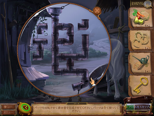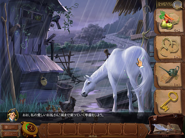 PC ダウンロードゲーム:パズル ゲーム 英語版タイトル:The Surprising Adventures of Munchausen 今すぐ「ミュンヒハウゼン男爵の大冒険」をプレイ! まずは無料体験版をダウンロードしよう。 昔々、美しく豊かな王国があった。だが国の魔法石が何者かに破壊されると、それまで光り輝いていた王国は暗黒に包まれてしまった。人々の間で争いが起き、王国の富は消え失せた。ある日、一人の邪悪な男がやって来てお金と引換えに王女と結婚させるよう王様に迫った。しかしその男との結婚を望んでいない王女は必死に手紙を書いて助けを探し求めた。我が友よ、今その手紙が手元に届いた。王国と王女を助け出させるのはキミしかいない。まさに選ばれし者と言えよう。無料体験版で「ミュンヒハウゼン男爵の大冒険」をプレイするか完全版をダウンロードしてミュンヒハウゼン男爵と共に散らばった魔法石のかけらを集めて悪党の陰謀を阻止しよう!最後に勝つのは善か悪か? - ミュンヒハウゼン男爵の大冒険