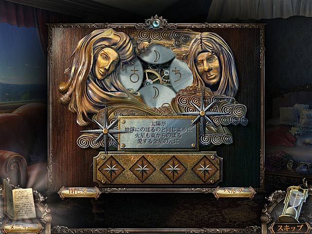 PC ダウンロードゲーム:アイテム探しゲーム 英語版タイトル:Timeless: The Forgotten Town 今すぐ「タイムレス:忘却の町」をプレイ! まずは無料体験版をダウンロードしよう。 楽しかった休暇も終わろうとしていたそんな時、乗っていた列車が急に暴走し始めた!危機一髪というところで列車を止め、降りてみるとそこは時の止まった奇妙な町。現れた花嫁の幽霊に助けて欲しいと頼まれた。花嫁は邪悪な魔法使いの陰謀に巻き込まれ、結婚するはずだった伯爵に会えないままでいるのだった。その魔法使いはクロノメトロンという装置を作り、町を破壊しようとしている!キミは秒読みに入ったクロノメトロンを止めて幽霊を救い、元の世界に戻ることができるのだろうか!無料体験版で「タイムレス:忘却の町」をプレイするか完全版をダウンロードして時の止まった不思議な町を探索しよう! - タイムレス:忘却の町