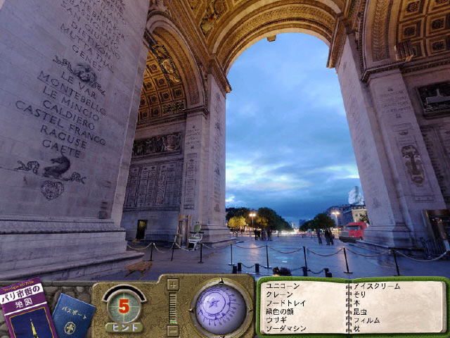 花の都パリの 22 ヶ所の名所と旧跡を大迫力の 360° のパノラマビューで楽しみながらお土産を探す旅。あなたの旅はパリの中心地からスタート!まずは有名なシャンゼリゼ通り、エッフェル塔、凱旋門から訪れよう。パリへ旅行したことのある方もない方も、このゲームでパリの街並みをゆったりと堪能しよう。 - トラベローグ 360 : パリ