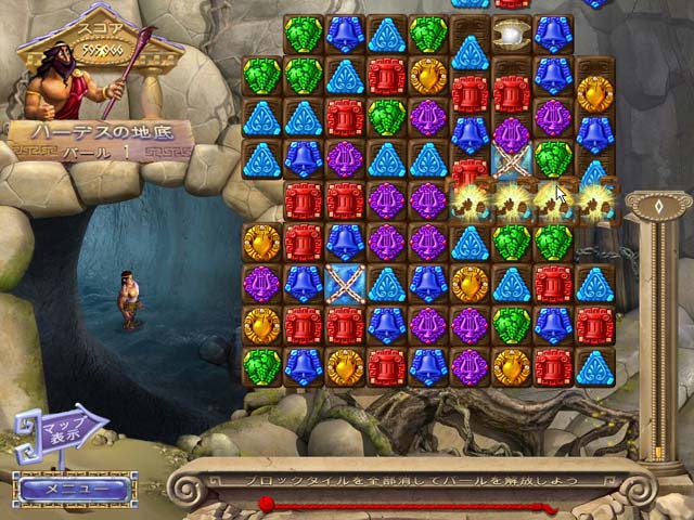 有名なギリシャ神話「アリアドネの糸」をマッチ 3 で再現しよう!相思相愛の勇者テーセウスと女神アリアドネの仲に嫉妬した冥界の神、ハーデスが怪物ミノタウロスをつかってアリアドネを誘拐してしまった!ギリシャ神話に登場するたくさんのキャラクターたちの知恵や能力を借りて、ミノタウロスの住みかである迷宮を目指そう。目印として残された糸とパールをたどりテーセウスは無事アリアドネを助けられるか!?ゲームを楽しんだあとは付録のすごろくで再びアリアドネ救出に向かおう! - 勇者テーセウスと運命の糸