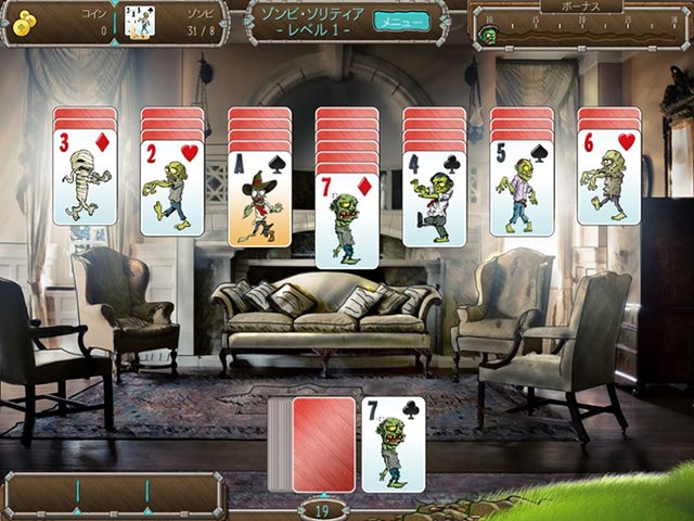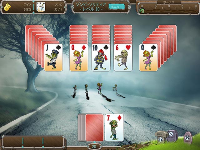 英語版タイトル:Zombie Solitair ある店の豆腐バーガーを食べたベジタリアンの紳士が突然ゾンビになってしまってからもう 2 週間がたつ。ゾンビはすごい勢いで他の人に感染し、町はあっという間にゾンビだらけになってしまった。あなたに残された方法は命をかけてゾンビのいない島まで逃げ切ることのみ!ゾンビ ソリティアで正しいカードを選んでどんどん道を切り開いていこう!途中にあらわれる楽しいミニゲームも満載!ただし、十分に気をつけて。ゾンビの足音はあなたの背後に近づいてきているかもしれない…! - ゾンビ ソリティア